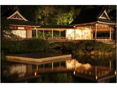 ・通常公開していない修禅寺を特別にご案内(拝観除外日あり)(事前申込要)・カレンダーC期間は天城連峰太鼓又は伊豆太鼓の演奏をお楽しみいただけます。 (時間/場所)夕刻/池の中の野外石舞台(鑑賞席)イス席 |