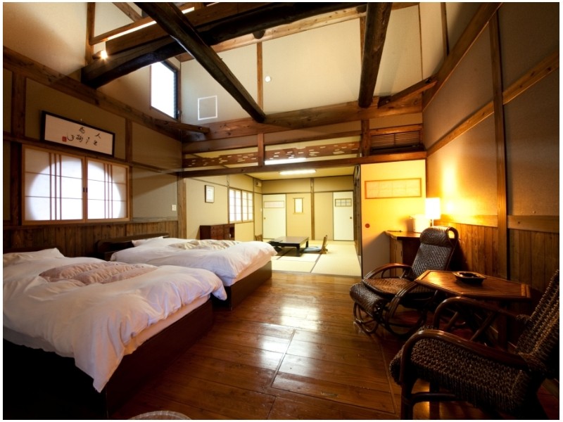 露天風呂付・内風呂なし10畳+次の間10畳 定員2〜5名様 ※客室の露天風呂は温泉です。