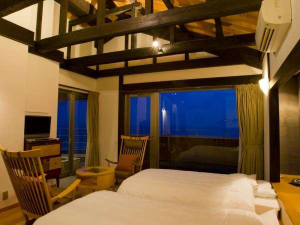 ※客室の露天風呂は温泉ではありません、ベッド2台