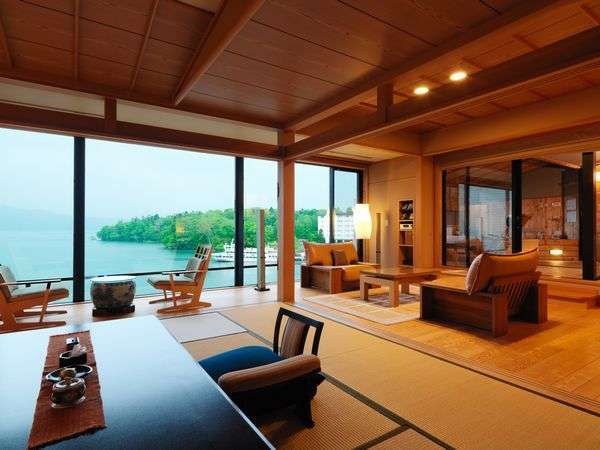 露天風呂付・内風呂なし12.5畳+洋間+リビング 定員2〜4名様 《湖(うみ)の座・和洋室》