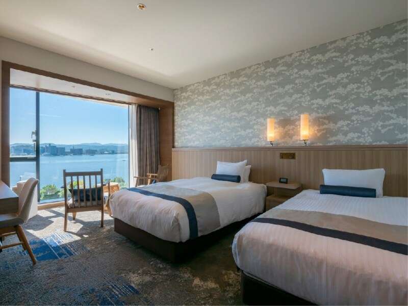 【本館・湖側】 デラックスツイン33u (定員2〜3名)禁煙 ●夕・朝食付(共にバイキング) |