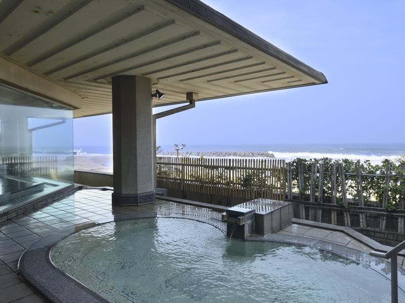 自家源泉を持つお風呂自慢のお宿。大浴場や露天風呂からは、日本海の大パノラマが広がり、海が見渡せます。バイキングは「旅館ならではの会席料理をそのままに」をコンセプトに約40種類のお料理をお楽しみいただけます。ステーキ、天ぷら、お寿司の屋台コーナーではお料理を目の前で調理し、できたてをご用意いたします。