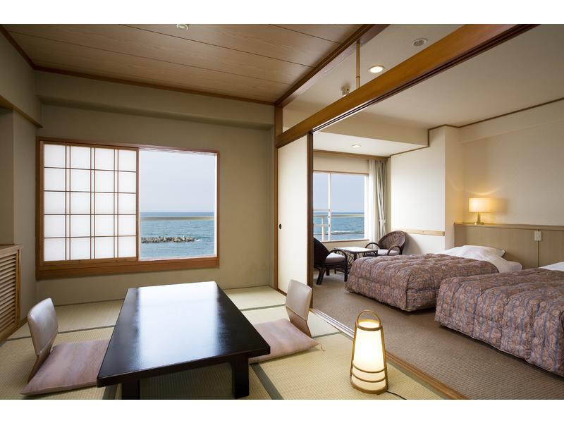 和洋室7.5畳+ツイン (定員2〜5名)禁煙 ●夕・朝食付(夕食ハーフバイキング) |