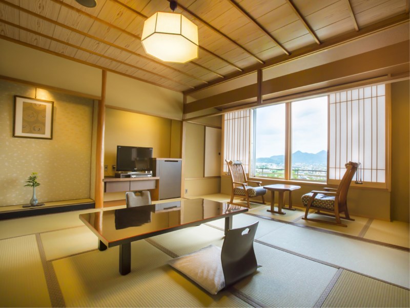 純和風庭園に囲まれた宿で、春の桜、夏の緑など、四季折々の風情を身近に感じることができます。竹林のにおいを感じることのできる展望露天風呂や、讃岐平野や讃岐富士が一望できるガーデンラウンジがおすすめです。