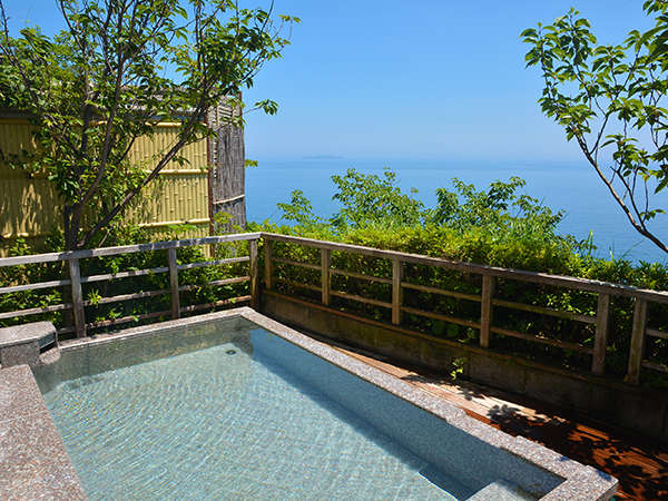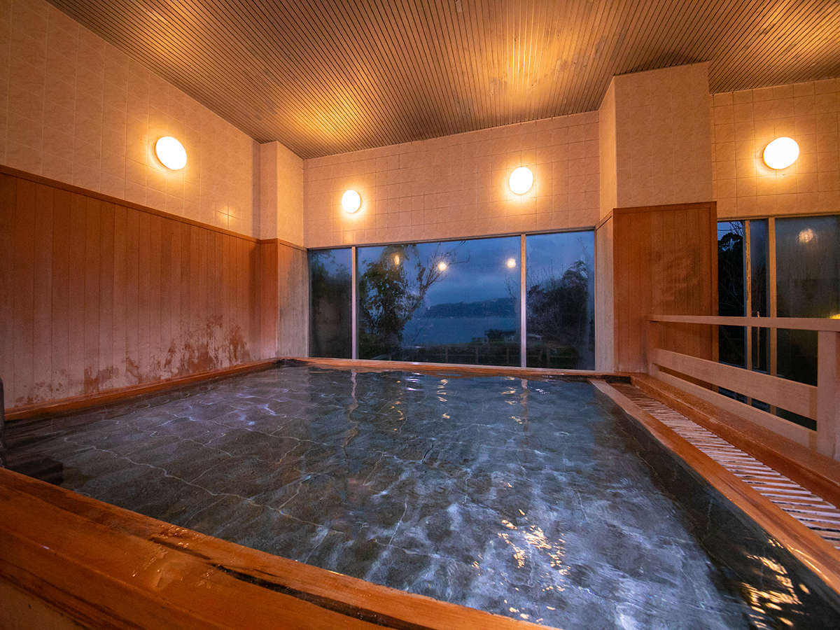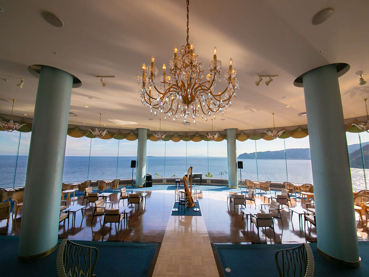 景勝地錦ヶ浦の高台に建ち、全室から初島大島が望めます。特に海に光輝く日の出と月明かりは絶景です。リラクゼーション型ホテルとして特に“香り”“音楽”“景色”を組み合わせた演出はお客様に大好評です。