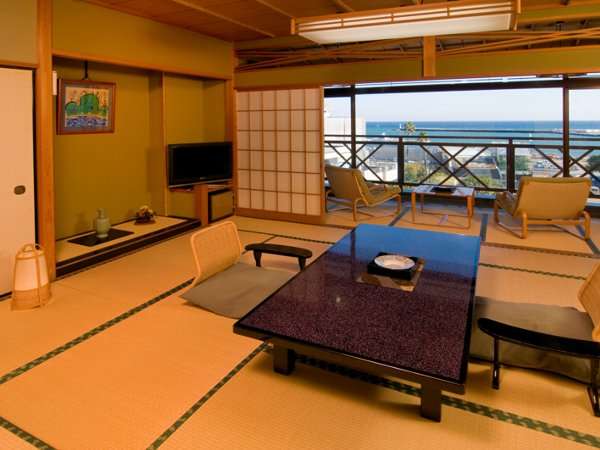 数寄屋造りの近代的純和風旅館。立地は135号線に面し海浜線がすぐ目の前、熱海サンビーチまで徒歩6分程で行けます。客室はゆったり広めの24室、グループ・個人客向き。団体の場合、貸切も相談で。男女別屋上露天風呂あり。