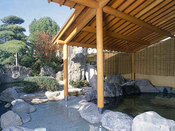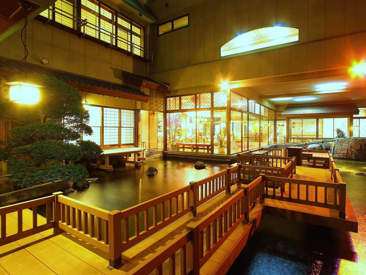 “和”をテーマにした、ロビーラウンジの正面には滝と池があり、また池に面した茶室、デザインベースは和風であり、随所に強く和を感じさせています。