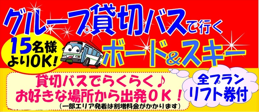| 2 | スキー&スノボタイム | 各スキー場(昼発)===着地(夜着) | 朝 |